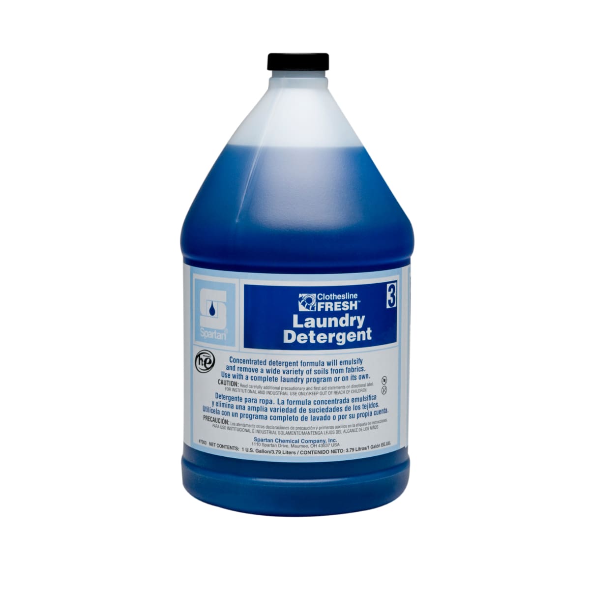 Clothesline Fresh Laundry Detergent can be used with a complete laundry program or on its own. This product was formulated to contain new advances in chemical surfactants and cleaning technology to provide a deep cleaning formula. Clothesline Fresh Laundry Detergent quickly suspends tough oily and particulate soils to prevent them from redepositing back onto the fabric.