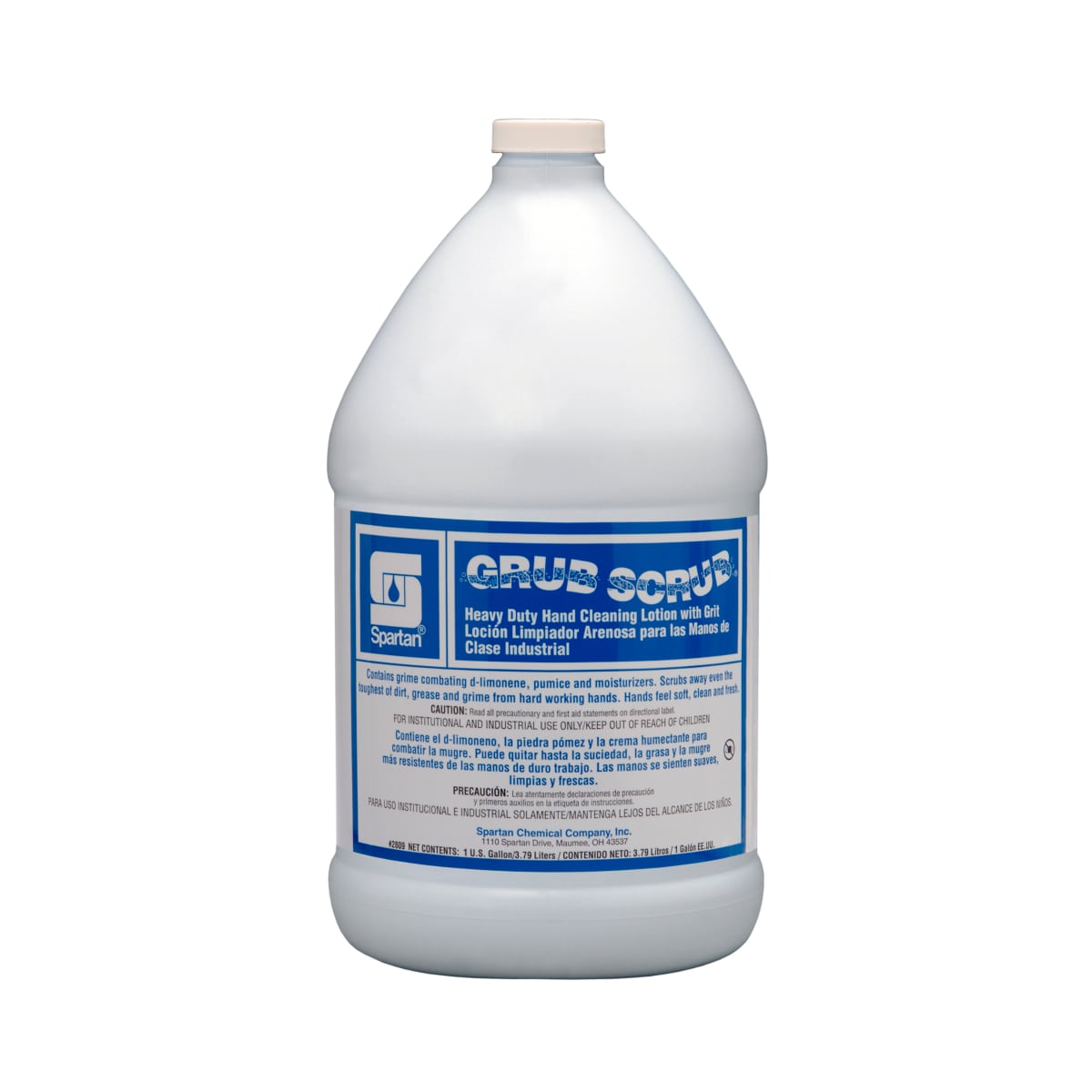 Grub Scrub is a heavy duty, pumpable Hand Cleaner formulated with d-limonene, pumice and moisturizers that work efficiently to penetrate and remove the toughest dirt, grease and grime from hard working hands. It goes where you go and works where you work to get your hands clean in the washroom or at the workbench. Hands feel soft, clean and fresh. No lingering fragrance or residue to offend senses. A unique emulsifying and surfactant system that works synergistically and d-limonene for quick efficient removal of grease.