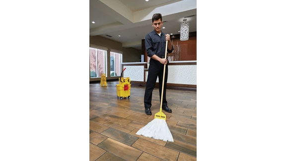 Invader® Side-Gate Mop Handle makes removing and replacing mop heads easy and efficient. Thumbwheel clamps the mop firmly in place; should be used with 1" headband mops only.