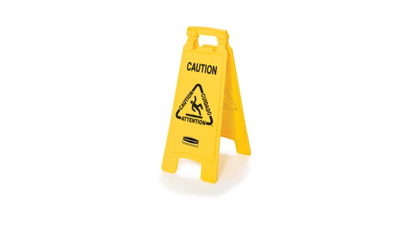 Lightweight "Caution" sign is 2-sided for effective multilingual safety communication and utilizes ANSI/OSHA-compliant color and graphics.